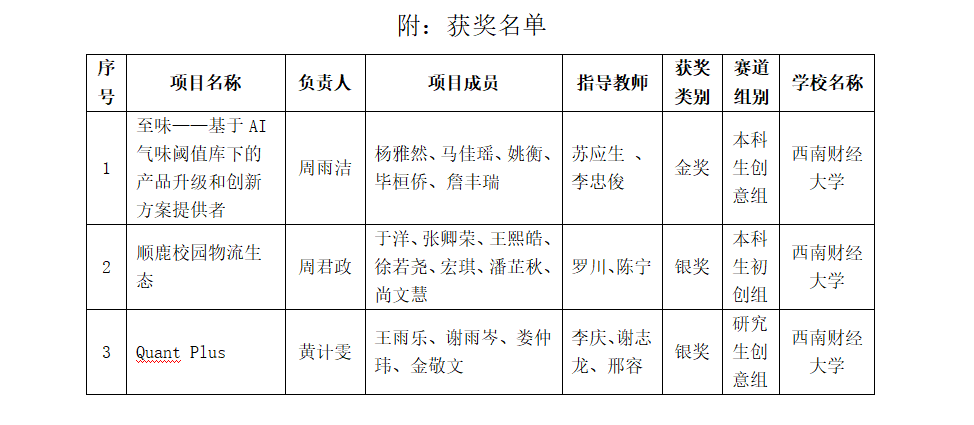 教师指导的《至味——基于AI气味阈值库下的产品升级和创新方案提供者》荣获中国国际“互联网+”大学生创新创业大赛省级金奖,《顺鹿校园物流生态》和《Quant Plus》荣获省级银奖。其中,《至味——基于AI气味阈值库下的产品升级和创新方案提供者》项目成功晋级国赛,这是我校第二次进入 “互联网+”大学生创新创业大赛国赛阶段。
