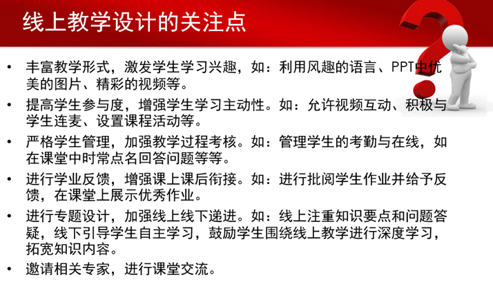 调整现阶段线上教学工作中的不足,进一步贯彻落实学校教学及督导工作相关文件精神,确保线上教学工作的高质量、高效率进行具有重要意义。