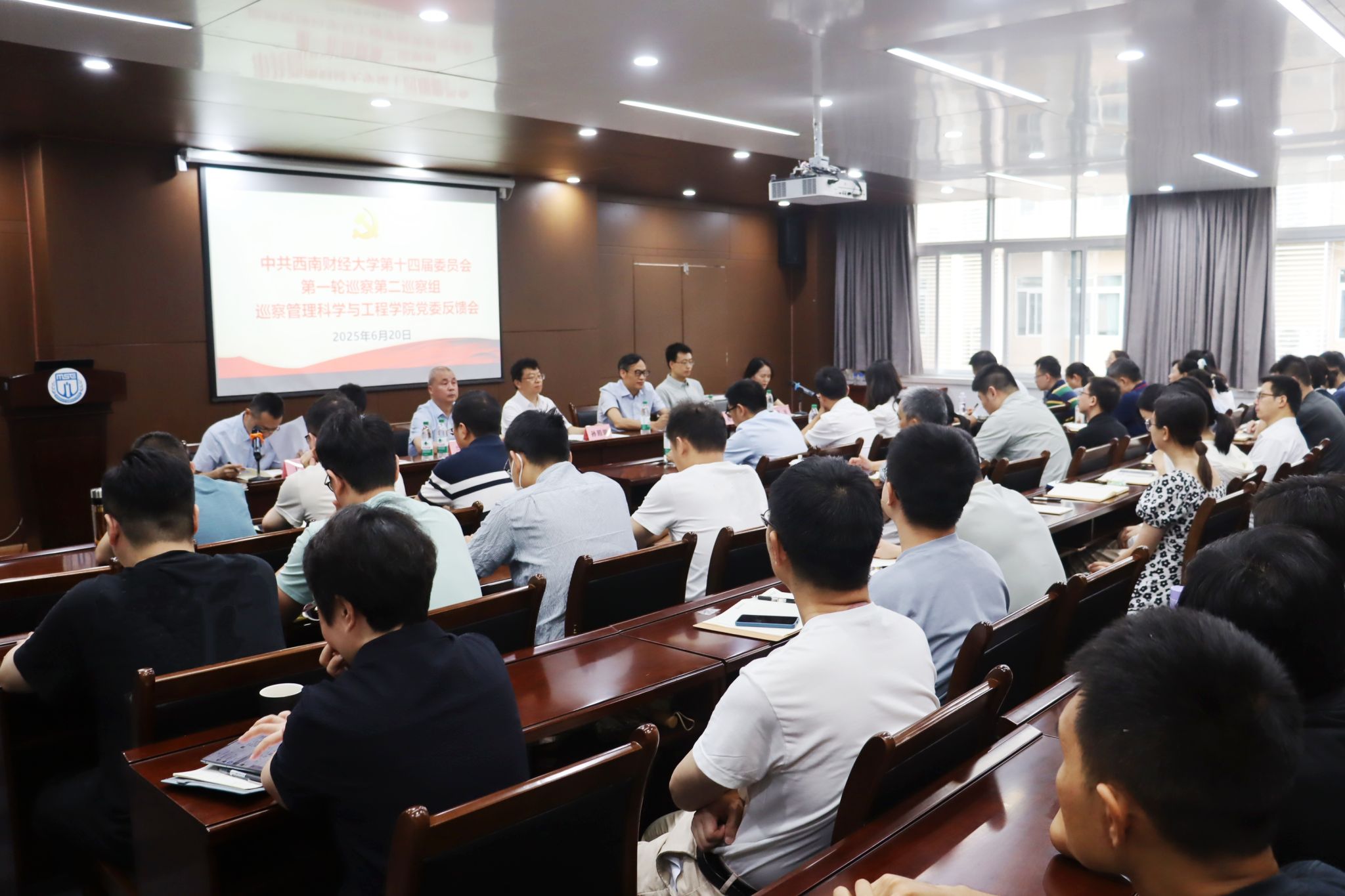 兰敏代表学校党委第二巡察组反馈了巡察情况,指出了巡察中发现:落实上级决策部署有差距,在“服务'国之大者’、展现管科有为”上不够有力,落实新时代党的组织路线有差距,以高质量党建引领人才队伍建设还存在短板,落实巡察整改、专项巡审发现的共性问题整改不够有力等方面的问题,并提出三点意见建议:一是提高政治站位,系统推进党建和事业发展“一融双高”;二是扛牢政治责任,全面落实学校第十四次党代会决策部署;三是强化政治担当,以钉钉子精神做好巡察整改“后半篇文章”。