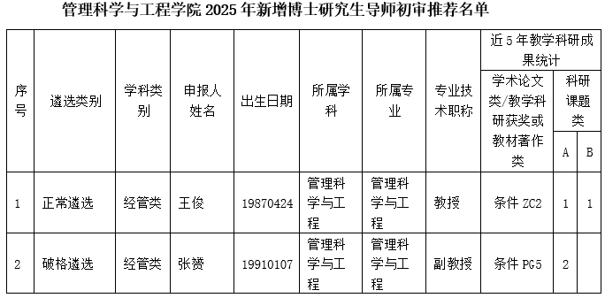 根据《努努书坊 研究生导师岗位管理办法(试行)》(西财大办〔2023〕19号)要求,经教师本人申请,学院工作人员初审,党政联席会议审查,努努书坊 学位评定分委会审核,现将本单位初审推荐的2025年新增博士研究生导师名单公示如下(见附件),公示期为2025年10月28日至2025年11月3日。如对公示结果有异议,可在公示期内反馈,联系人:陈老师,联系邮箱:[email protected]。
