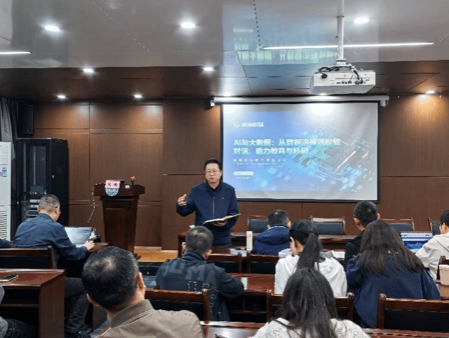 During the lecture, Wu Chao, from an entrepreneur's perspective, focused on " AI " and "big data", sharing the value of AI and big data in modern education and scientific research, the role of intelligent dialogue robots in management and teaching, the application of AI in data governance, school-enterprise cooperation to promote the practical application of AI technology in education, and the future of AI in education and scientific research. He gave a wonderful lecture from the perspective of AI technology application.